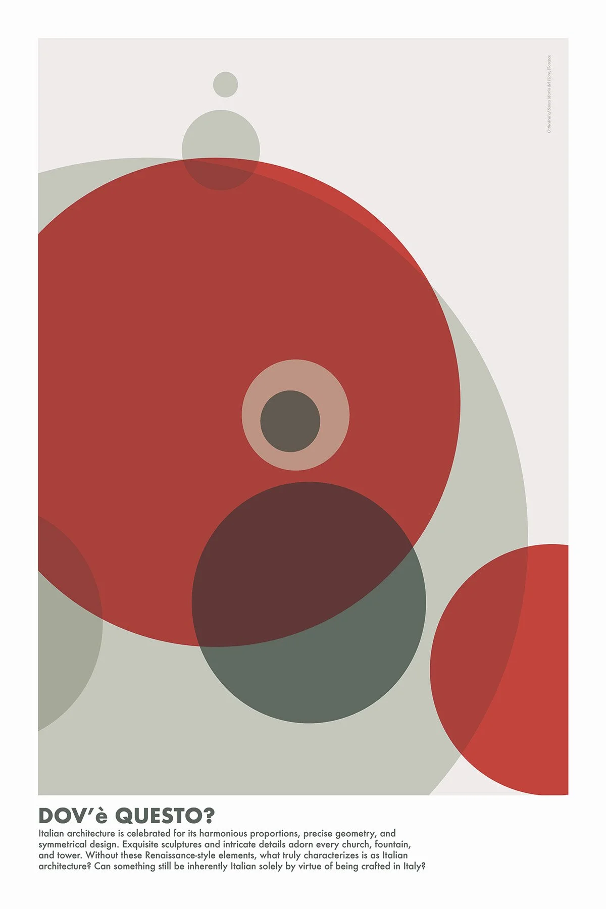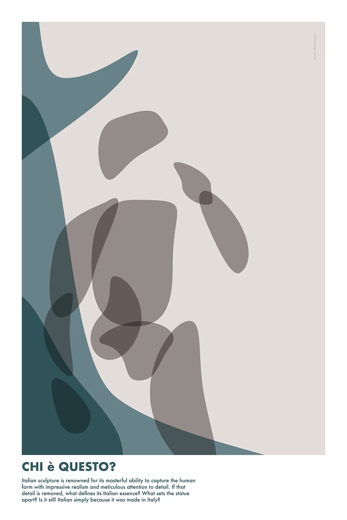 These posters highlight and call into question the Italian's history of intricate, sophisticated, and intentional detail in all manners of artistic expression. With these details stripped away and only the base shapes left, are these classically Italian art forms still inherently Italian? Is it the fine craftsmanship that makes it Italian, or is it the craftsmen who created the work?